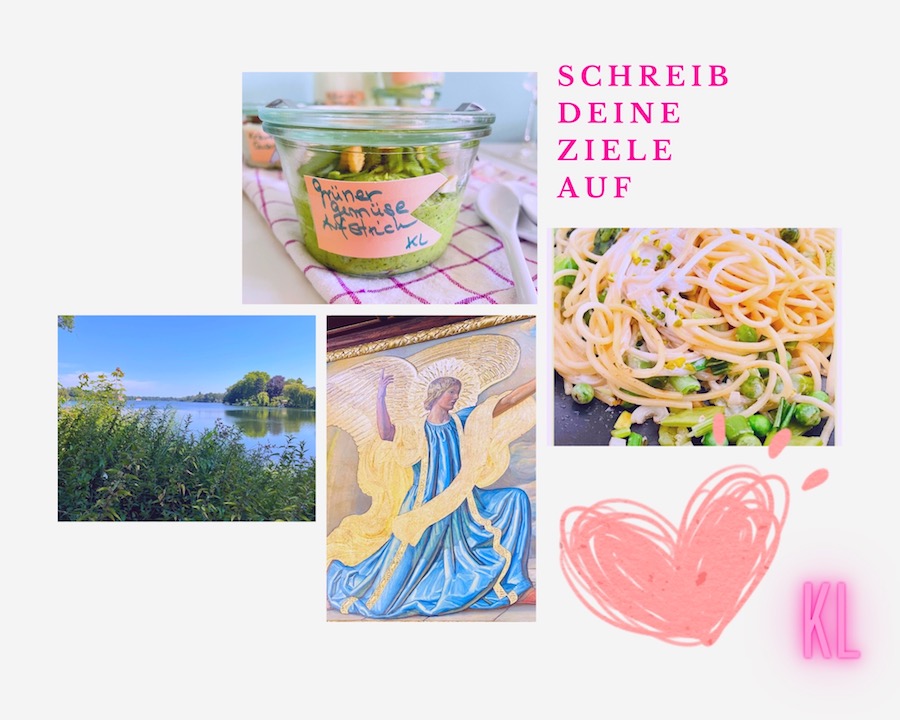 Nächste Woche vertiefe ich dieses Thema und erzähle dir von meiner morgendlichen Routine: Dem Morgen Blabla. Es ist mir in Fleisch und Blut übergegangen mich morgens nicht nur zu dehnen, ein großes Glas heißes Wasser mit Zitrone zu trinken, sondern auch meine Gedanken, Wünsche und Alles was mir so grad einfällt aufzuschreiben. Dafür stehe ich meist eine halbe Stunde eher auf – es sind bestimmte Kriterien, die mir helfen Glück und Zufriedenheit zu empfinden und in die Tat umzusetzen! Das Ziel ist es was mich treibt, nicht der Weg!