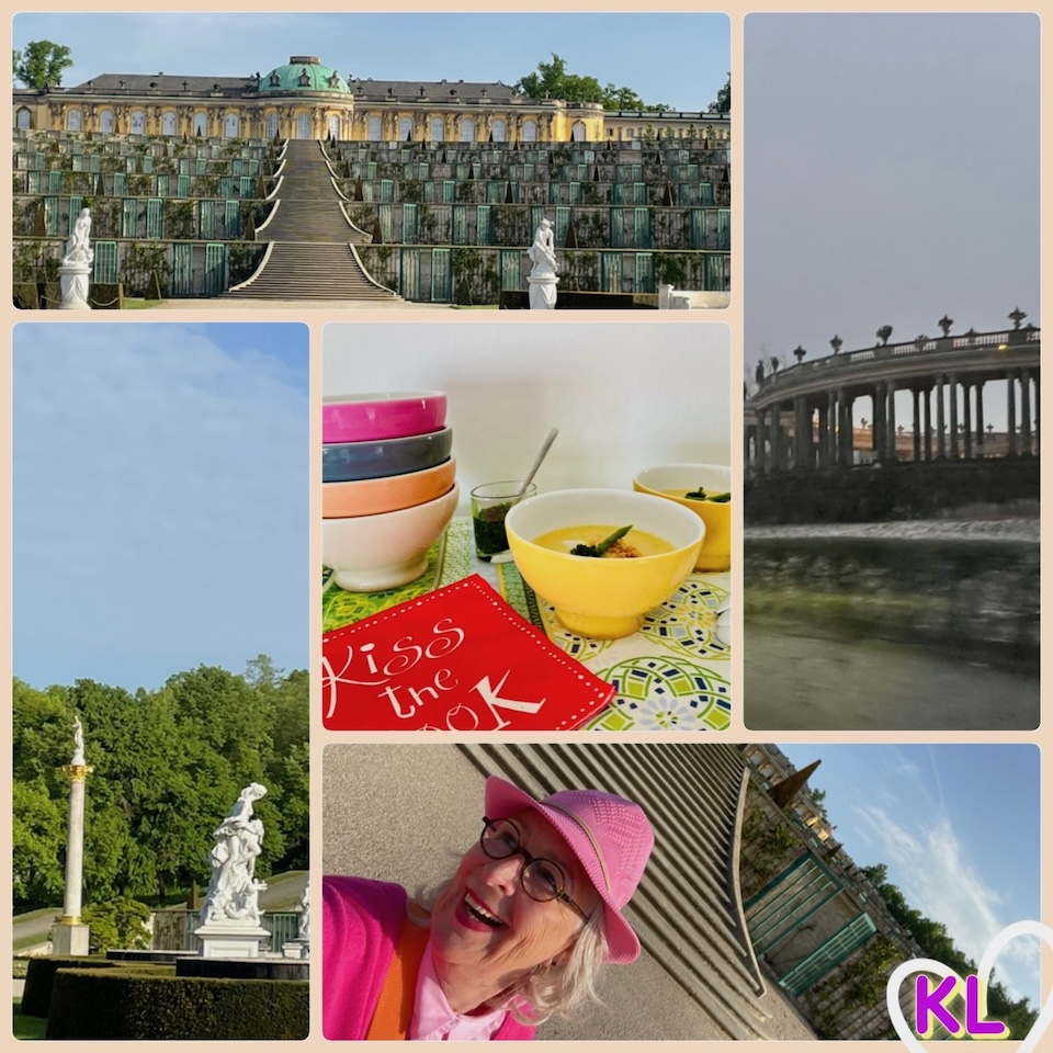 Seit einigen Jahren ist das Küchengeflüster ein fester Bestandteil meiner Arbeit. Die Kundschaft und die Lesenden mögen diese Idee: Wir schlendern gemeinsam durch Potsdam, manchmal fahren wir auch mit dem Boot, ich zeige meine Lieblingsplätze und serviere dazu ein saisonal passendes Essen. Fein! Oben habe ich hinter dem Link den Mai 2022 verlinkt – ja, das ist schon einen Moment her, doch das Spargelrezept ist immer noch ein Favorit. Heute treffen wir uns am Fuße des Schloß Sanssouci – die Kartoffel ist mein Thema, doch es gibt dazu auch Spargel.
