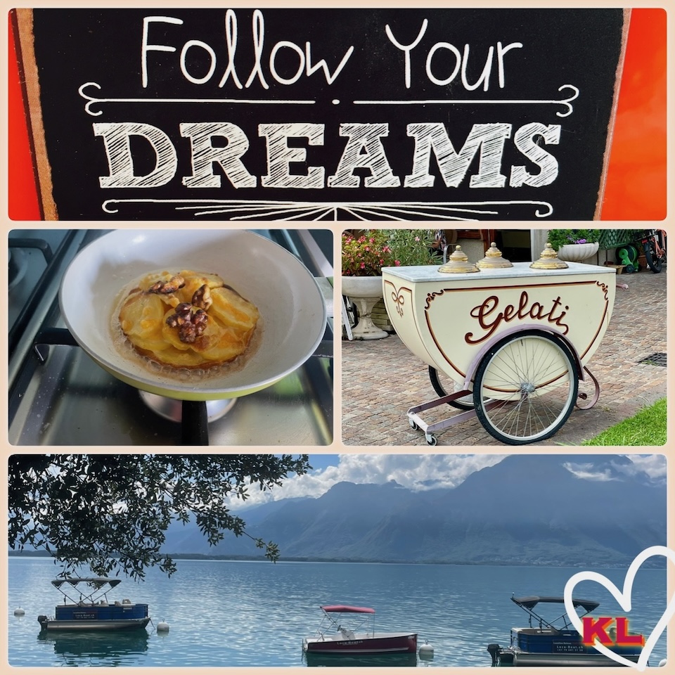 Was sagst du zu einem kleinen verträumten Apfelküchlein aus der Pfanne? Dazu gibt es als Hit des Tages eine Kugel Vanilleeis mit Dulce de leche – ha! Das ist ein echter Gaumenschmeichler, etwas so Kleines, gar Liebliches und dennoch mit enormen Potential. Ja, die einfachen Genüsse sind nicht zu unterschätzen!